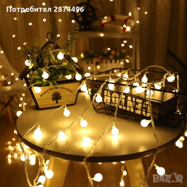 LED гирлянд от малки топки, идеален за различни декорации в дома, за парти или празници.