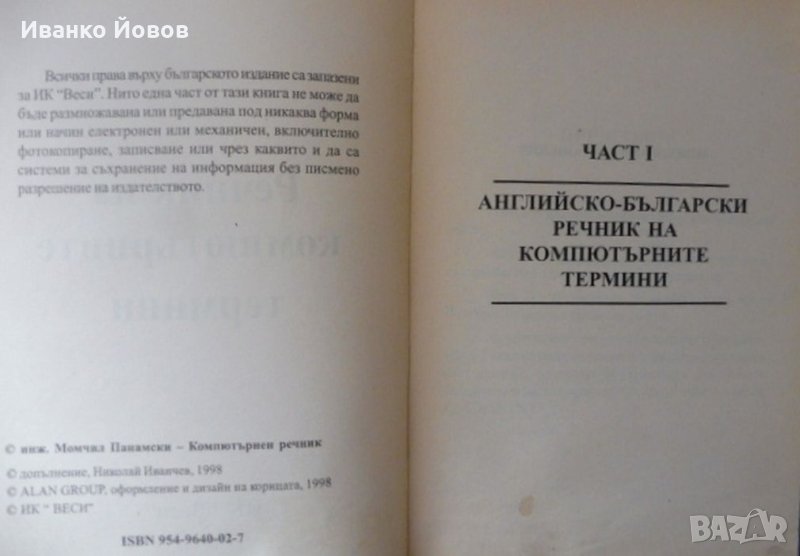 – Български компютърен речник за всеки, инж. Момчил Панамски, издателство ИК