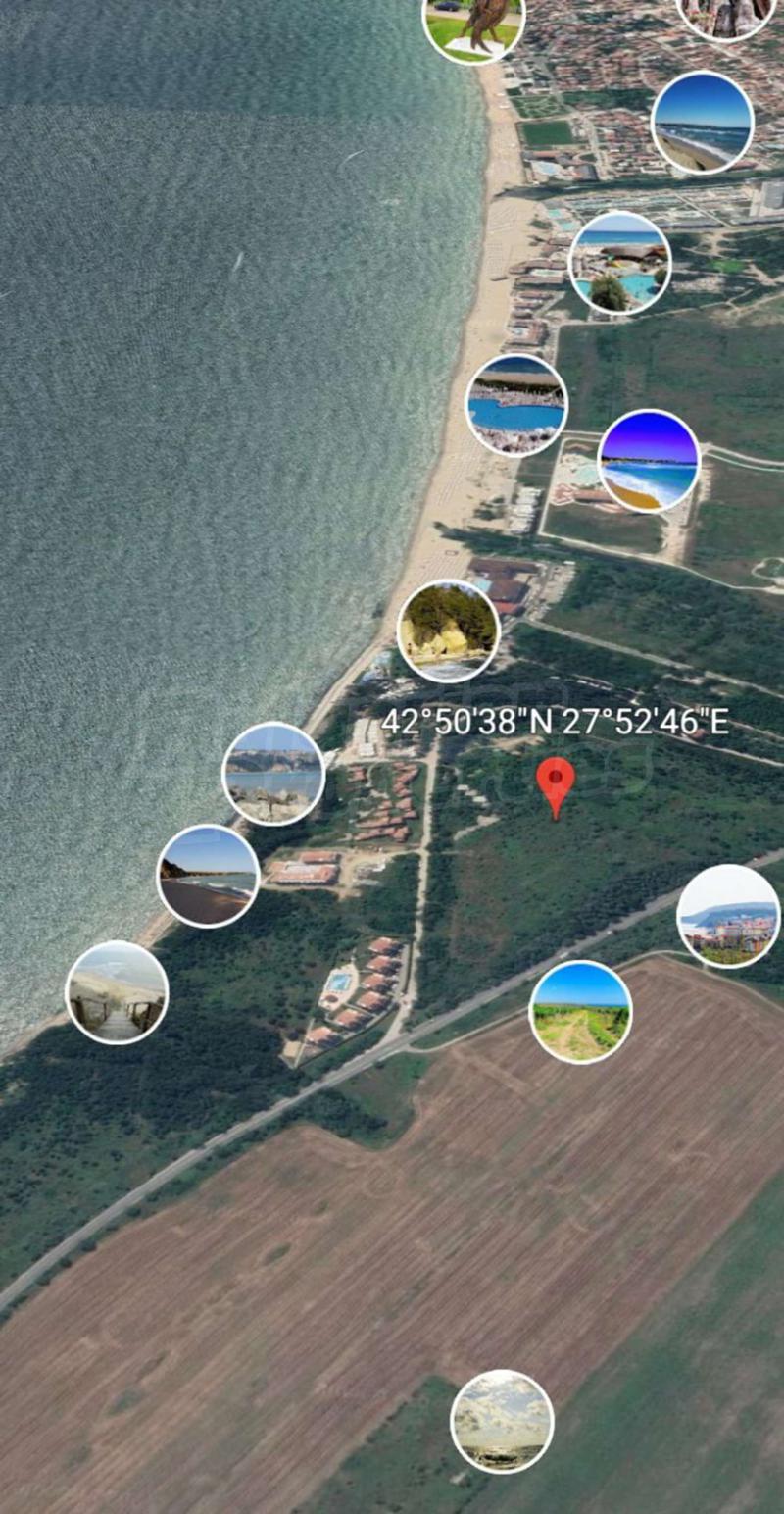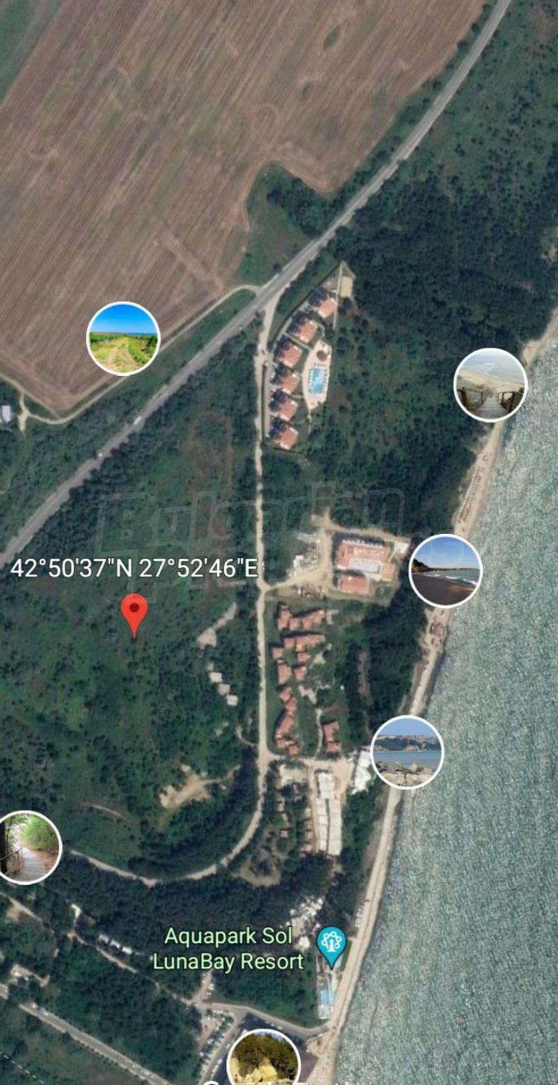 Незастроен парцел с площ от 3000 кв.м. в регулация едва на 200 м от плажа и в близост до Аквапарк и луксозни ваканционно комплекси. Имотът разкрива прекрасна морска гледка.