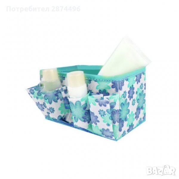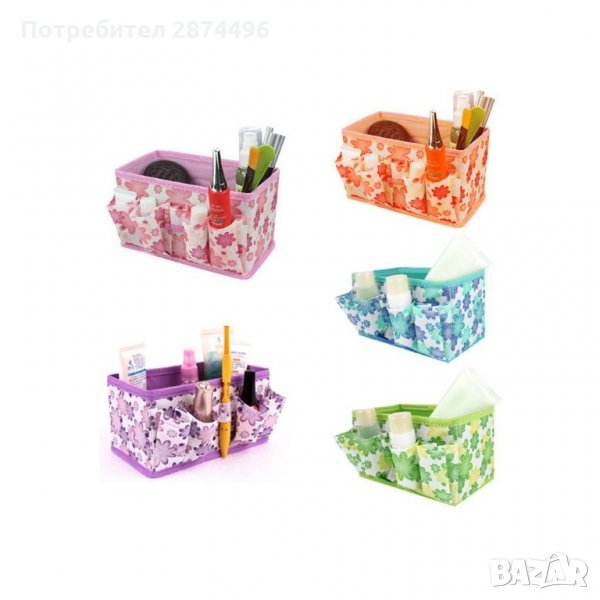 Декоративна пластмасова кошничка с плетен дизайн, за организиране и съхранение на различни вещи, козметика, кухненски аксесоари и други.
