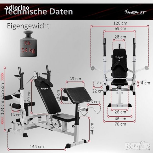(вижте снимките за подробни размери), тегло: около 40 кг, максимална