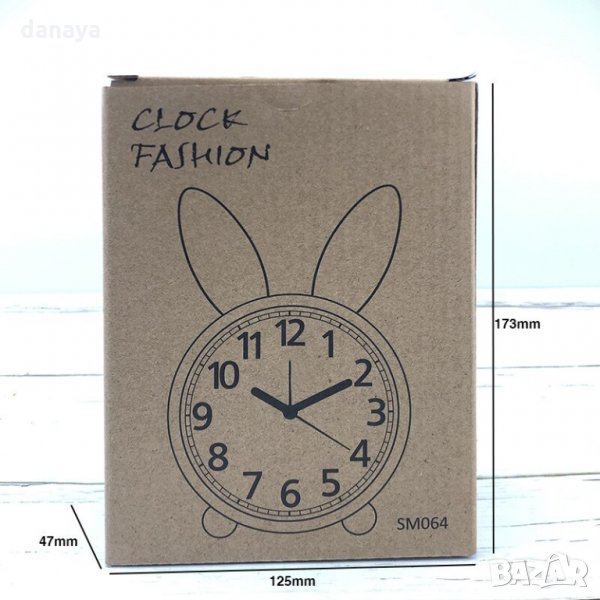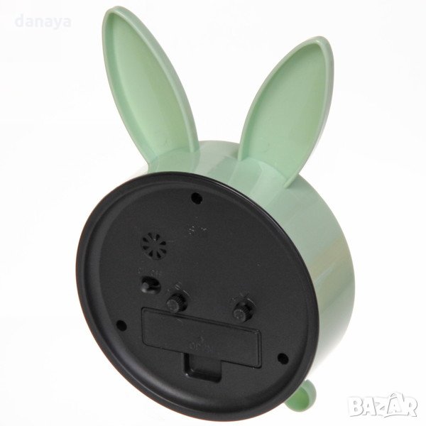 Будилник Зайче. Симпатичен детски настолен часовник с аларма с форма на весело зайче с дълги уши. Будилникът е подходящ за офис бюро, за детска стая или всекидневна. Аналогов дисплей, пластмасов корпус. Циферблата има големи цифри, които се виждат отдалеч. Предлага се в кутия и е подходящ за подарък. Работи с една АА батерия (не е включена в комплекта).