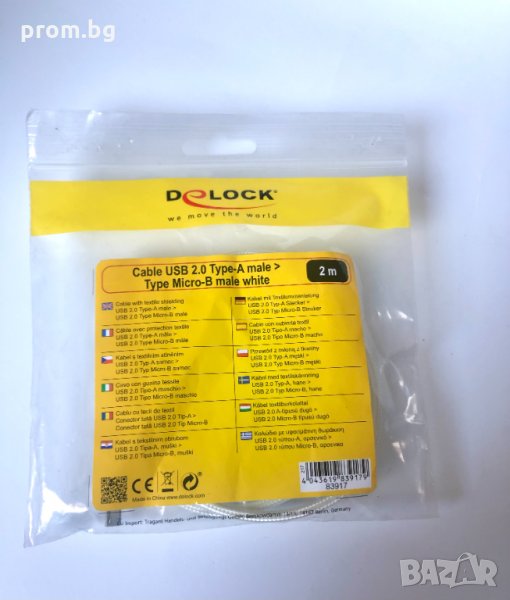 USB текстилен кабел 2 м Delock, Micro-B, Type-A, пренос на данни, Германия → Обява 35741232