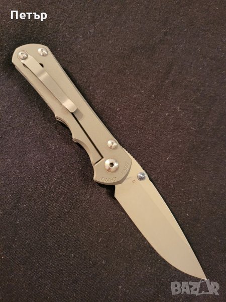 Green Thorn Inkosi с класическо острие, титанева сплав, фрейм лок, лагерува на шайби, стоманата е D2 закалена на 59-60 единици.
