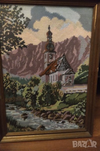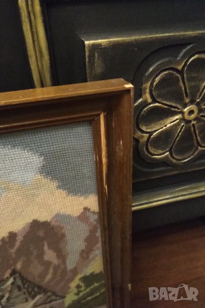 Красив гоблен с дървена рамка и предпазен прозрачен плексиглас .