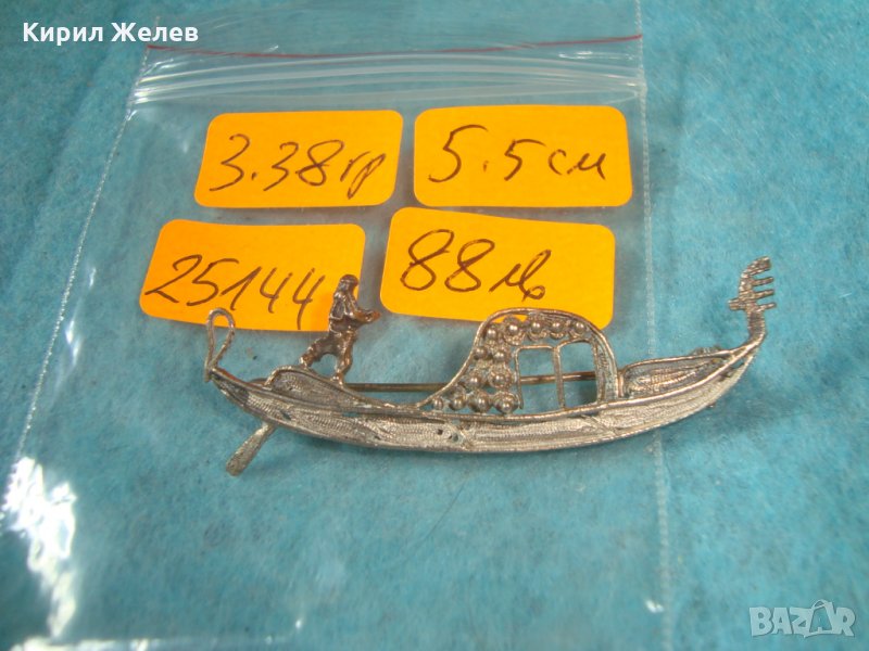 СТАРА СРЕБЪРНА ВЕНЕЦИАНСКА БРОШКА ГОНДОЛА МАСИВНО СРЕБРО МАРКИРАНА РЪЧНА АРТ ИЗРАБОТКА УНИКАТ 25144
