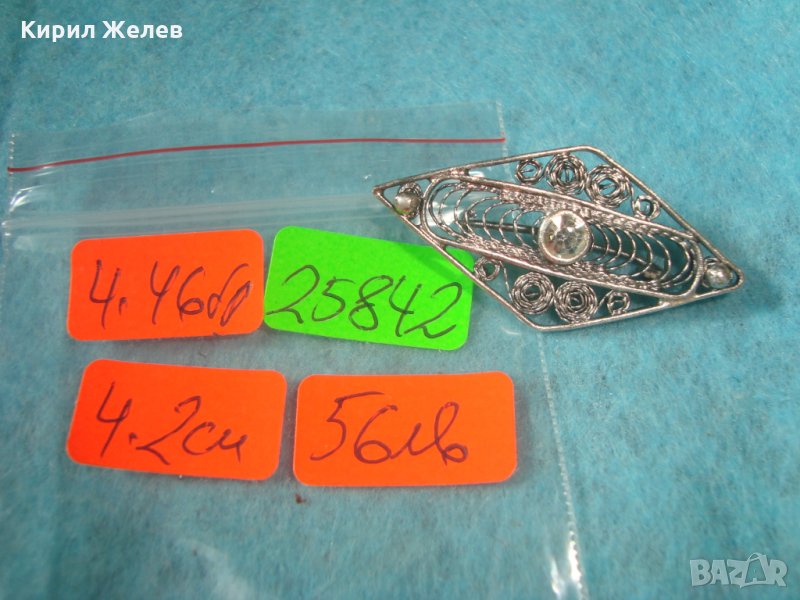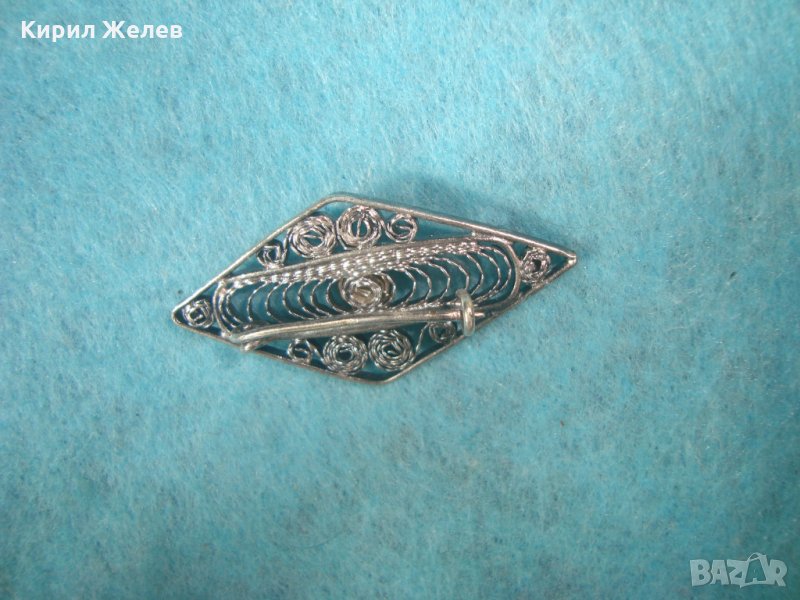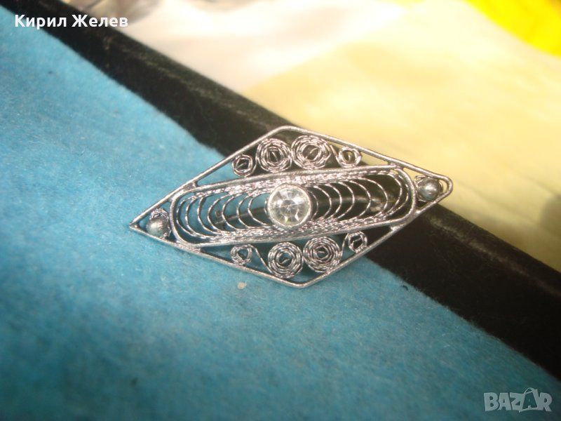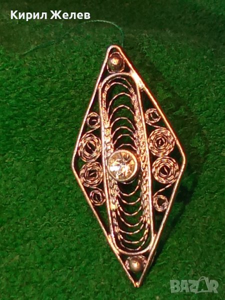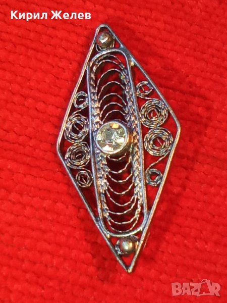 СТАРА СРЕБЪРНА РОМБОВИДНА БРОШКА ФИЛИГРАННО СРЕБРО ВИСОКА ПРОБА МАЙСТОРСКА ИЗРАБОТКА с ЦИРКОН 25842