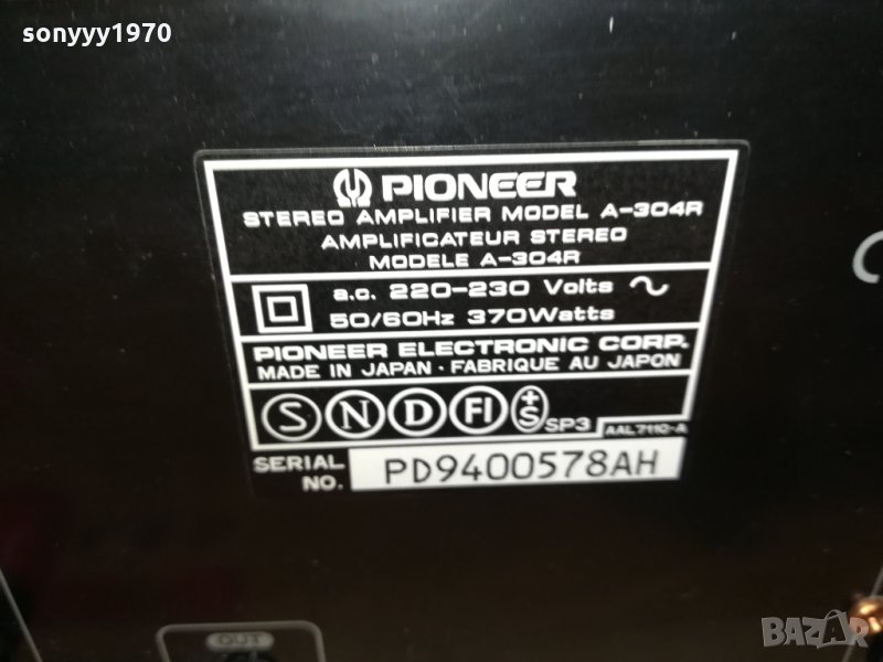 ТРАНЗИСТОРЕН СТЕРЕО УСИЛВАТЕЛ PIONEER A-304R-MADE IN JAPAN-370W НА ТРАФА-СВИРИ СТРАХОТНО-НОВ ВНОС И БЕЗ РЕМОНТИ-ИДЕАЛЕН ВЪНШНО-от днес 28.02.22г пращаме със спиди или еконт с преглед и тест след превод на капаро за куриерската услуга поради зачестили некоректни потребители-поръчки само в тук в саита! по телефона и със смс не! краини цени! бартери не правиме! всеки ден нови неща-още 2-3 наши обяви тук