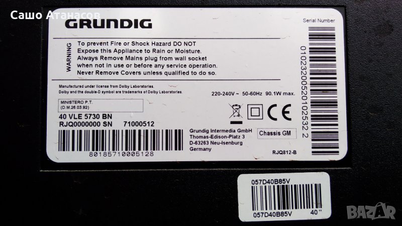 Модули от телевизор GRUNDIG 40 VLE 5730 BN със счупена матрица (панел 057D40B85V / LSC400HN02-803 )