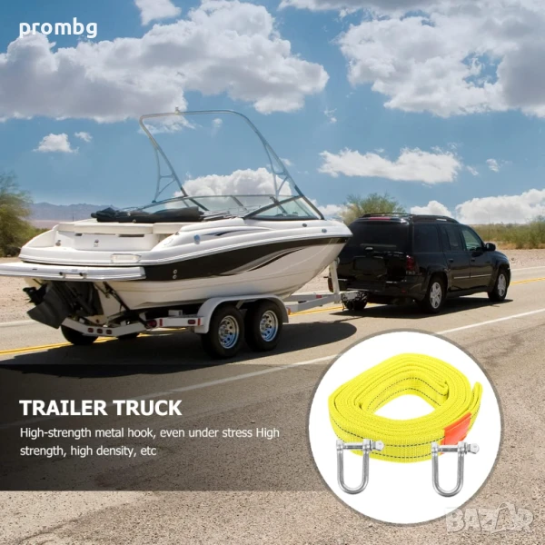 въже за теглене с метални куки, 5т, 5м, внос от Германия. Размери: 500 x 4,3 cm. Въжето е с ковани и термично обработени твърди метални куки с предпазни катарами за стабилно теглене и лесно свързване. Въжето е с допълнителна издръжливост и предпазва ръбовете на колана от протриване и износване, за по-дълъг експлоатационен живот. Цвят: жълт; Материал: полиестер.