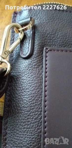 Унисекс чантичка със три преградки и цип.Естествена кафява кожа,нова.