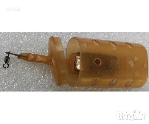 🎣 Orca-bg предлага плоска фидер хранилка, специално проектирана за риболов с бял червей. Изработена от еластична и трудночуплива пластмаса, с капаче в горния край и висококачествен вирбел с карабинка. Цветът ѝ се слива с дъното, което я прави почти невидима под водата. Подходяща за всякакви водоеми – реки с течения или затворени водоеми.