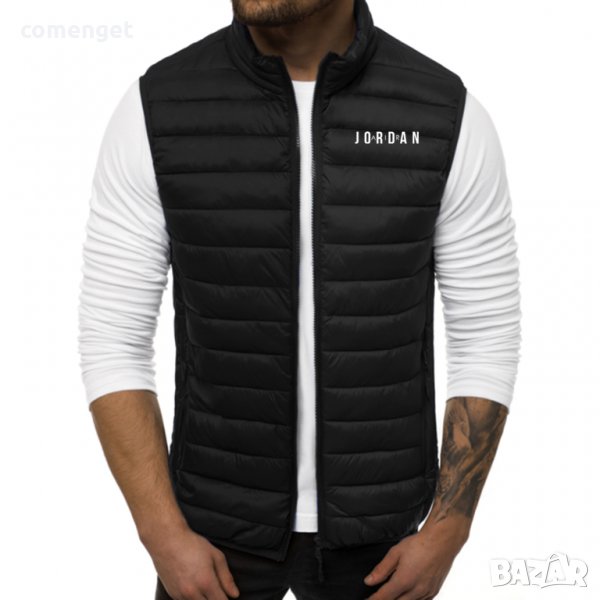 Стилно модерно мъжко ветро и водоустойчиво яке JUST DO IT & AIR JORDAN без ръкав с пълнеж, комбинация от шушляк, полиестер и микрофибърна вата. Якето е с цип със защита на брадичката и джобове с два скрити контрастни ципа. Вталено, удобно и олекотено.
