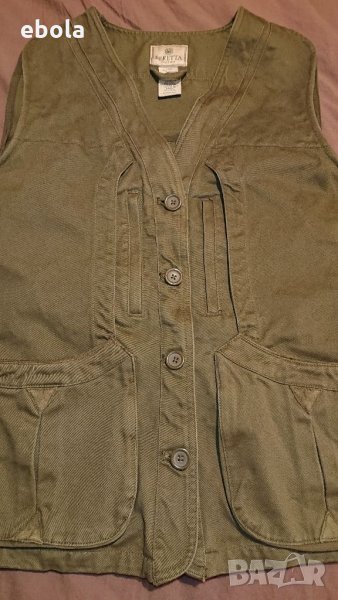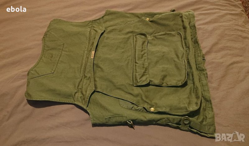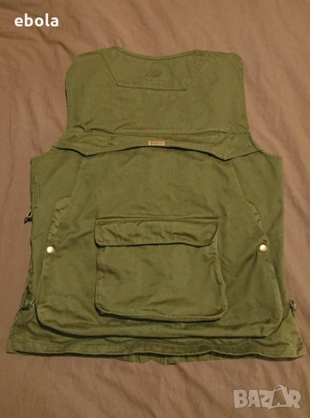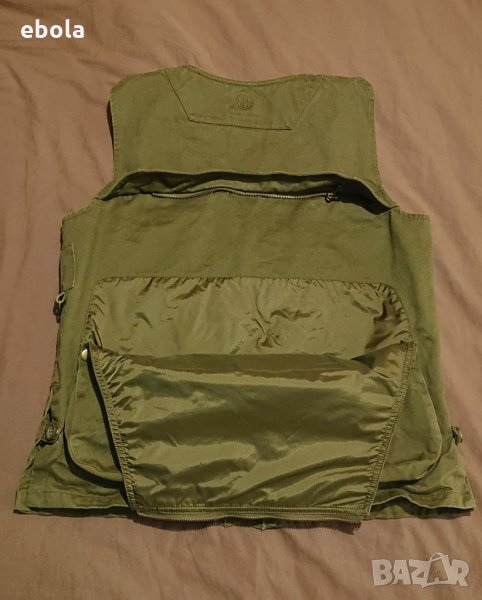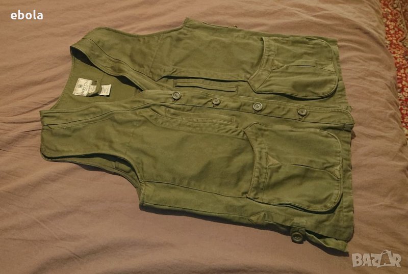Жилетката е без никакви забележки. Отговаря на мъжко - М. Изключително удобна с практични джобове. Размери: Между мищниците 54 см в закопчано състояние. От рамо до долу 64 см. Марката няма нужда от представяне.