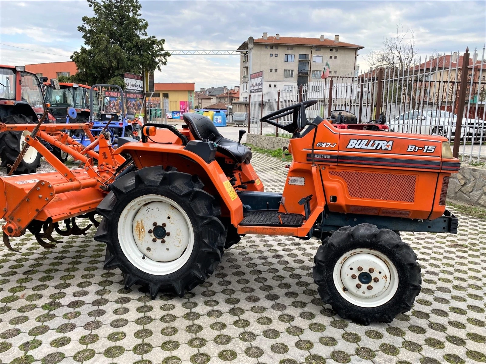 НАЛИЧЕН ! ! ! Трактора е KUBOTA В-15 15коня, 3 цилиндров двигател, 4X4 с фреза 1. 20м. Трактора е много запазен. Има многостепенна скоростна кутия, блокаж на диференциала, хидравлична система на навеса и др. Фирмата предлага голямо разнообразие от Японски мало габаритни
