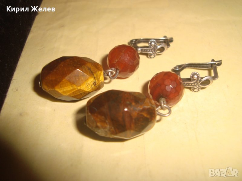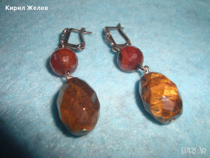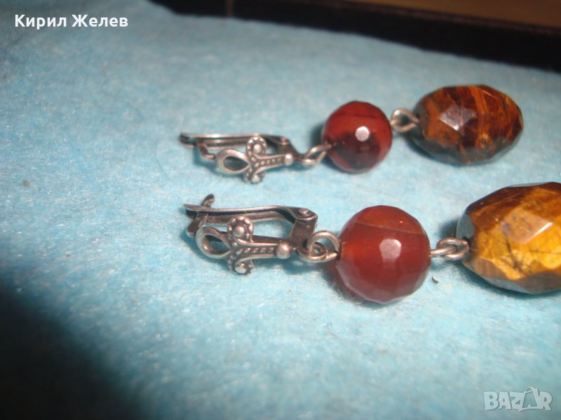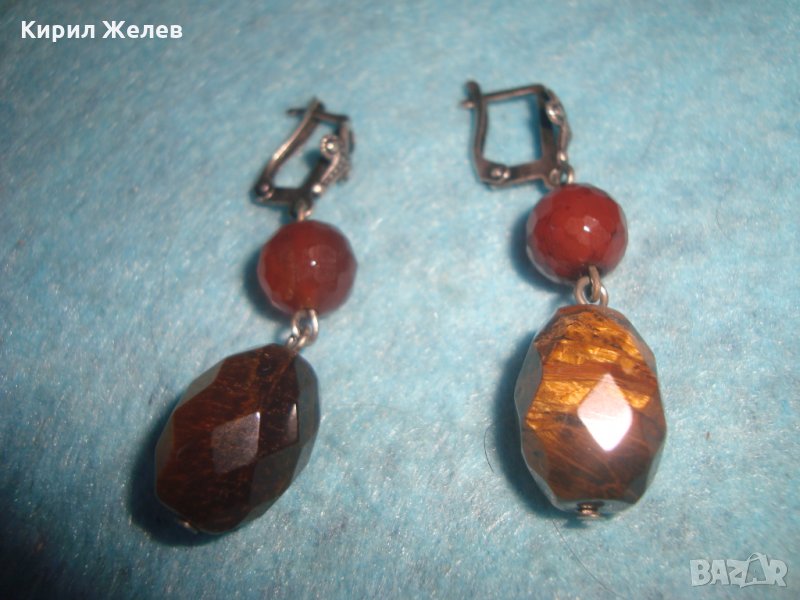 СКЪПОЦЕННИ СРЕБЪРНИ АРТ ОБЕЦИ ОКСИДИРАНО СРЕБРО 925 с ФАСЕТИРАН КАРНЕОЛ и ТИГРОВО ОКО УНИКАЛНИ 25776