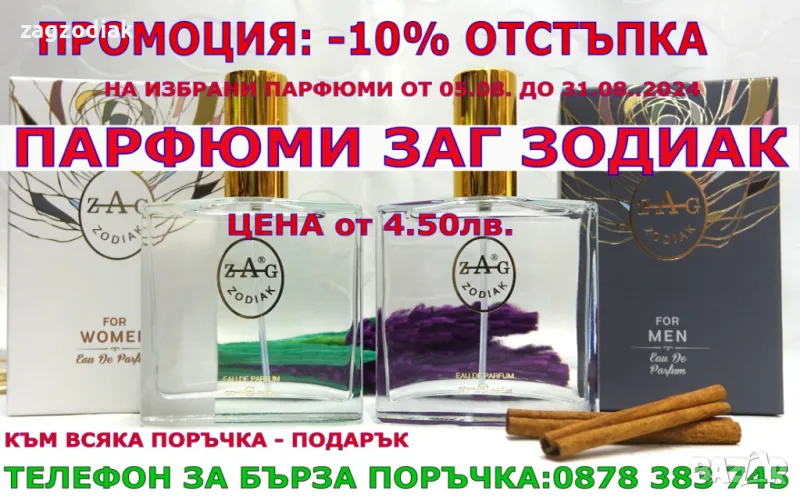 ПАРФЮМИ "ЗАГ ЗОДИАК" / ZAG ZODIAK SHOP"-ПАРФЮМИ С КОНЦЕНТРАЦИЯ ДО 20% НА СУПЕР ЦЕНИ!