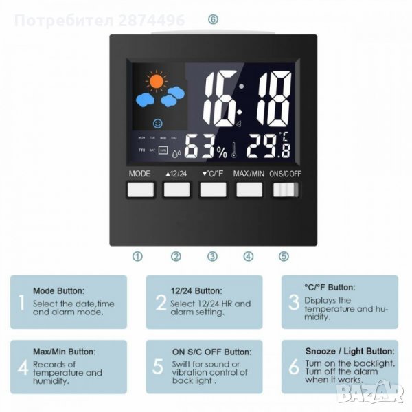 Текущата информация винаги е на разположение. Бъдете в крак с температурата / влажността в помещението. Грижа за вас и вашето семейство.