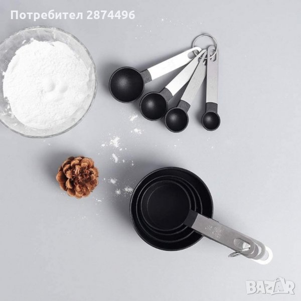 4бр. чаши за измерване: 1 чаша 236 мл. ; 1/2 чаша 118 мл. ; 1/3 чаша 78 мл. и 1/4 чаша 59 мл.