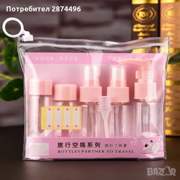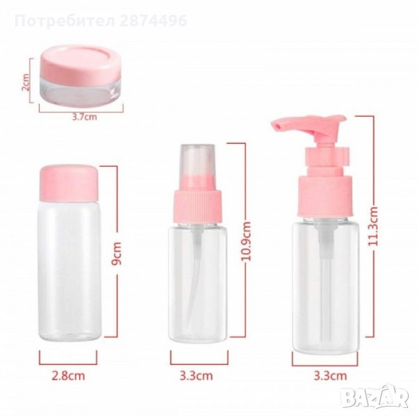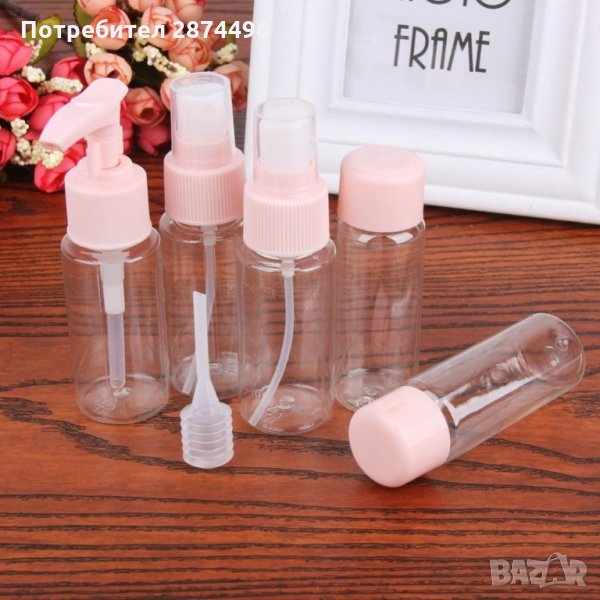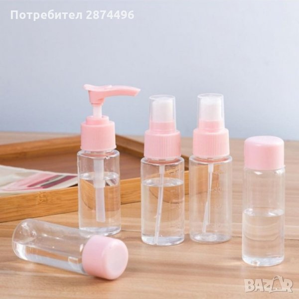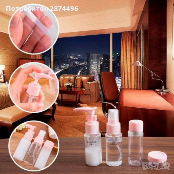 Козметичен комплект, който ще направи пътуването ви по-приятно, защото ще ви улесни страхотно при приготвянето на багажа! Комплектът съдържа 5 броя малки шишенца 50 мл. и малка кутийка, в които да отсипете от най-необходимите козметични продукти - шампоан, балсам, лосион за тяло, крем за лице и др.