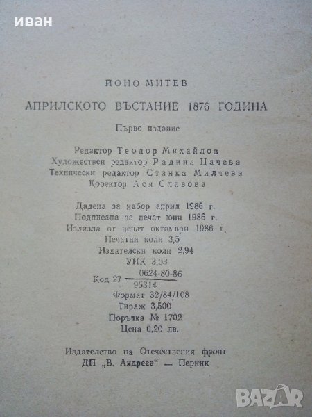 Априлското въстание 1876 г. - Й.Митев - 1986 г. → Обява 35763499