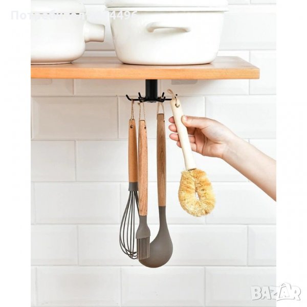 Удобно и практично решение за всяка кухня, с което ще спестите място и всеки необходим прибор ще ви бъде под ръка. Закачалката се монтира на гладки повърхности с помощта на здрава самозалепваща лепенка.