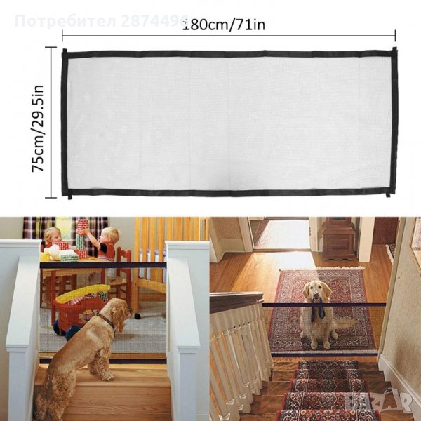 Нейната цел е да загради и да предотврати преминаването на кучето до част от вашия дом, където не желаете то да стъпва. Дари това ще е вашата спалня (никой не обича да спи върху купчина косми), горния етаж, кухнята или детския кът – вие решавате. Предпазната мрежа се монтира изключително лесно посредством укрепващи пръчки и вендузи. Поставя се помежду две стени, ограждайки пространството така че кучето да не може да премине. Без дупчене, гвоздеи и излишен труд!