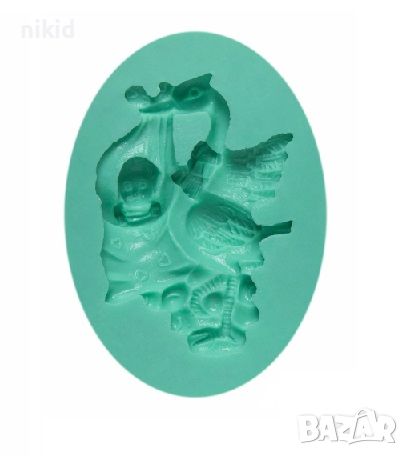 Щъркел с пашкул бебе в чувал силиконов молд форма фондан шоколад гипс → Обява 35768528