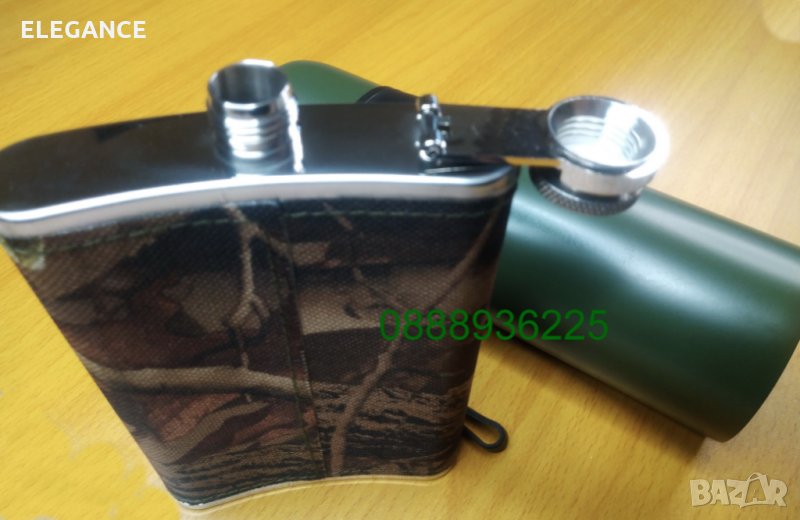 бутилката за коняк (от комплекта, както и практичен допълнителен джоб с цип за смартфон или кутия цигари