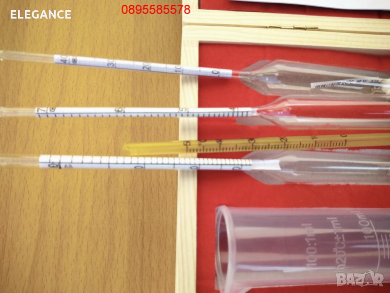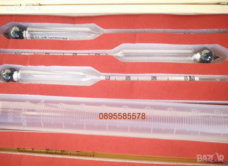 Дължина на всеки един от спиртомерите от групата: 20,5 см,