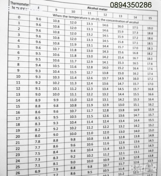 комплекта таблици и получавате реалната стойност на алкохола на Вашеата