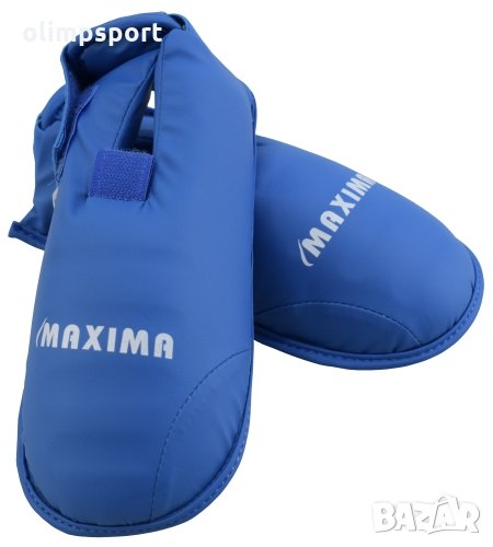 Протектори за стъпала за карате чифт. Изработени са от удароабсорбираща материя, покрита от здрава изкуствена кожа. Предназначени са да защитават краката на каратистите по време на тренировки и съзтезания. Закрепване към краката - посредством 2 ластика /1 за пръстите и 1, който минава през средата на петата/ и велкро лепенка за стягане около глезена. Различни размери - XS, S, M; Цвят - син и червен; Тегло - 0.085 кг