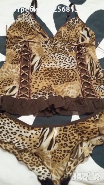 НОВ Луксозен Комплект Бельо-Корсаж тип Корсет+Бикини в тигров десен;р/р S → Обява 35775004