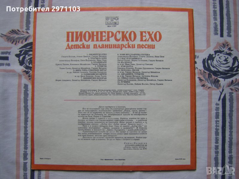 Грамофонна плоча - ВЕА 11797 - Пионерско ехо. Детски планинарски песни