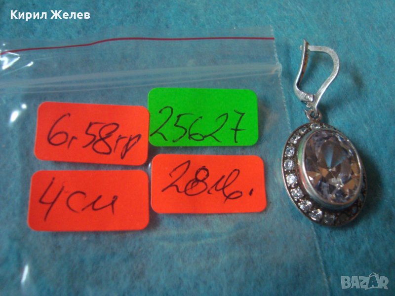 СТАРИННА СКЪПОЦЕННА СРЕБЪРНА ОБЕЦА ВИСОКА ПРОБА СРЕБРО с ФАСЕТИРАН ПЛАНИНСКИ КРИСТАЛ и ЦИРКОНИ 25627