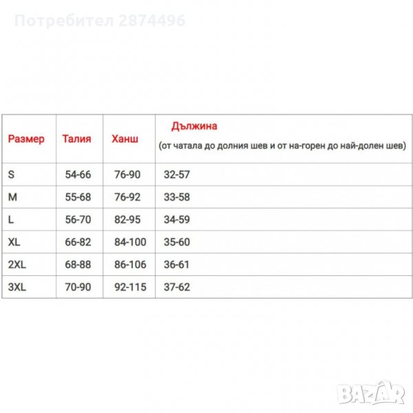Размер Талия Ханш Дължина (от чатала до долния шев и от на-горен до най-долен шев)