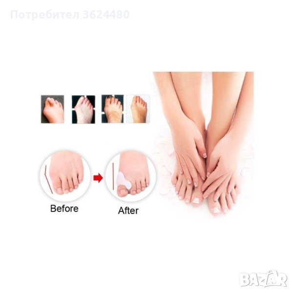 Облекчете болката в палеца и малкото пръстче със силиконов разделител за пръстите на краката. Този иновативен продукт е изработен от тънък и мек силикон, който нежно помага за изправянето на притискането от обувките пръсти на краката и за предотвратяването на подутината върху ставата в основата им. Палеца е изправен, а малкото пръстче е облекчено.