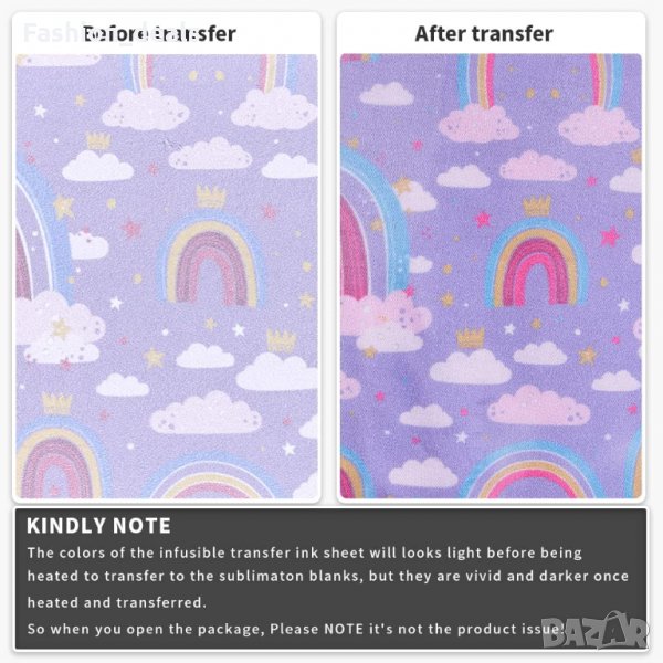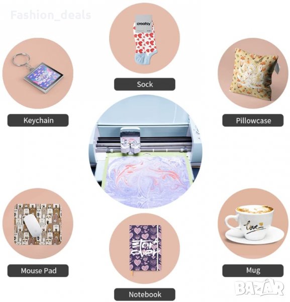 Хартията може да създаде изображения върху порцелан, метал, коприна, плат от химически влакна и други материали за най-кратко време, като тениска, подложки, възглавници, чаши, чанти, обувки, чорапи, шапки, престилки, градински знамена и др.