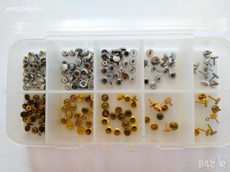 Разполагаме с богат набор от части за механични и кварцови часовници, будилници, стенни часовници: Баланси, Оси, Анкери, Ремонтоари, Коронки, Пружини, Колелета, Колела Уплътнения за заден капак, Уплътнители и др.