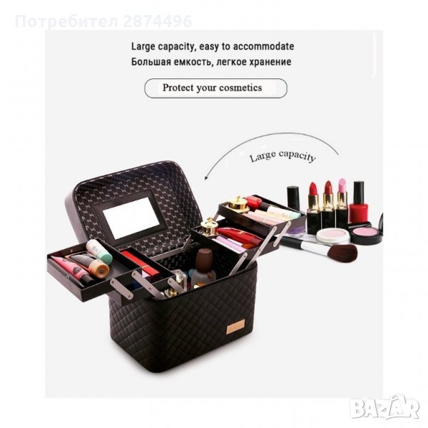 Благодарение на дизайна си, този несесер побира огромно количество козметика, предпазва я от повреждане, осигурява прегледност и лесно намиране на търсеното. Освен това, разполага с вградено огледалце от вътрешната страна на капака, стабилен двупосочен цип и удобна дръжка за пренасяне. Не е за пренебрегване и красивата визия изчистени линии и класически цветове.