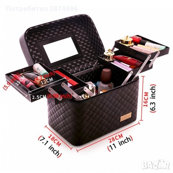 Несесерът се състои от едно основно отделение, както и 4 рафтчета на специални механизми. Те са перфектни за подреждане на червила, спирали, четки и други дреболии, които използвате докато се гримирате.