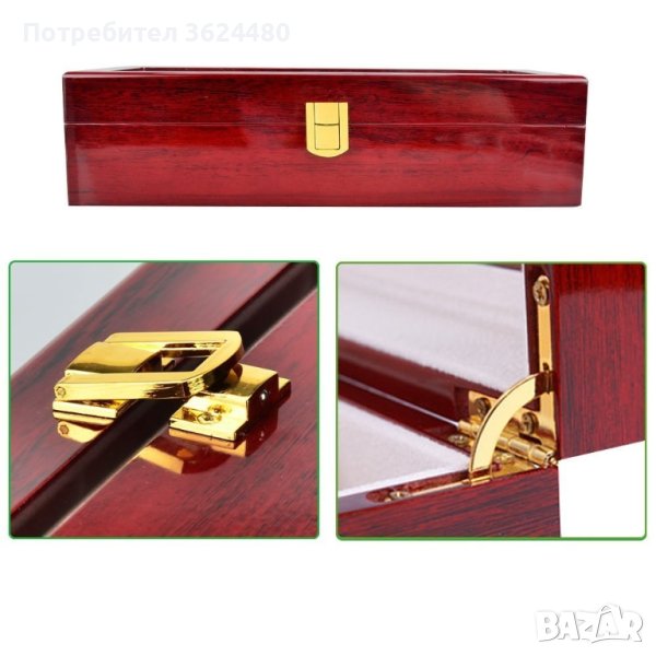 Изработена от дърво, снабдена с 6 вътрешни отделения за съхранение на часовници или гривни. Разполага с 6 подложки.