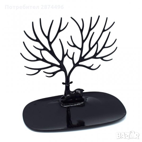 Стойка за бижута дърво и поставка с елен е съчетание от красив дизайн и практичност едновременно. Горната част на стойката е елегантно проектирана като дърво, образувано от разклонените рога на елена. Клоните на дървото са идеални за закачане и организиране на дамски бижута като обеци, колиета, гривни, пръстени.