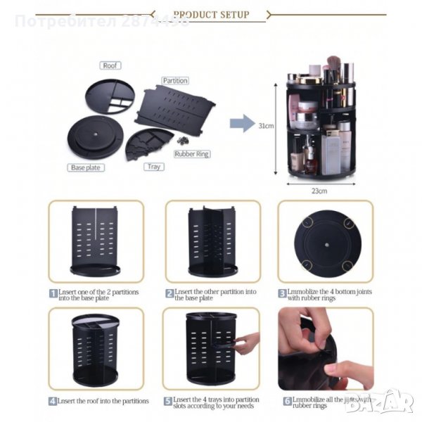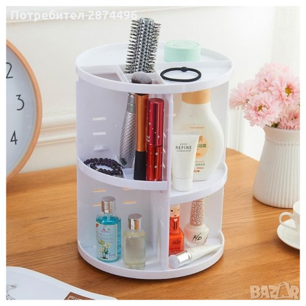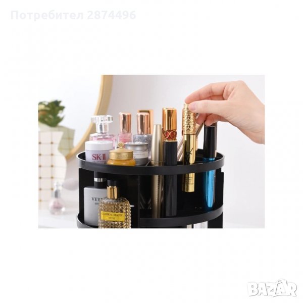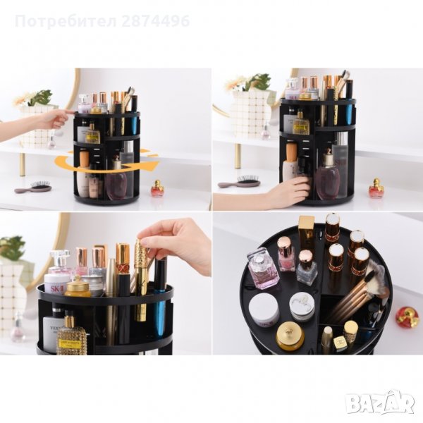 Въртящия се на 360 градуса органайзер е чудесно допълнение към Вашата домашна гримьорна като едновременно прилежно подрежда използваните от Вас продукти и спестява място.