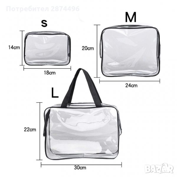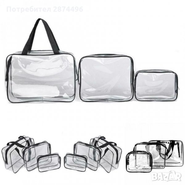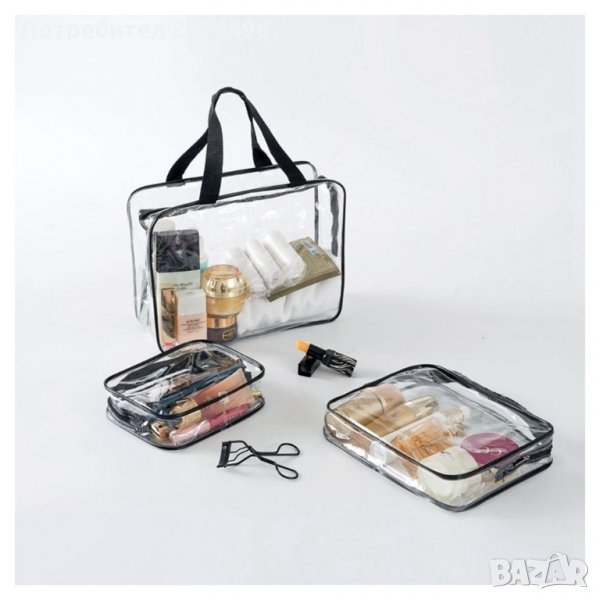 Комплект 3 броя органайзери за козметика за пътуване - прозрачни