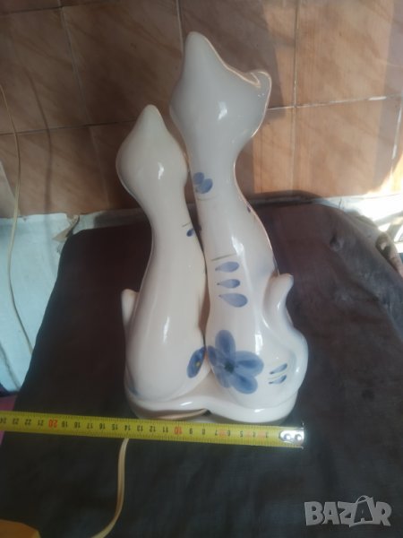 фигуративна настолна лампа-котета.порцеланов корпус.