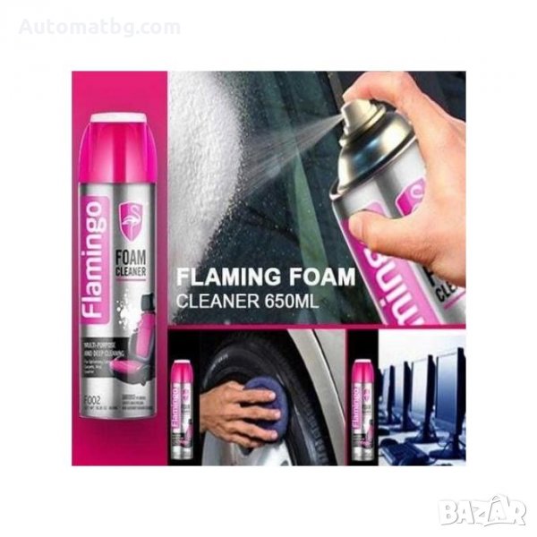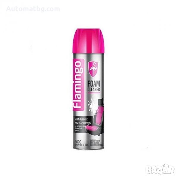 Универсалната пяна за почистване на Flamingo е особено ефективна за почистване на тапицерия от винил и плат, постелки, килими и кожа.