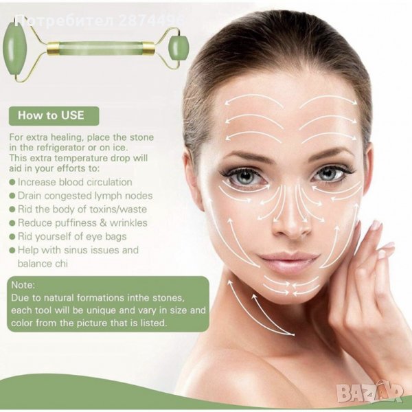 Комплектът съдържа: 1 брой нефритен ролер. Гуа Ша нефритения камък се закупува отделно на цена 3лв.