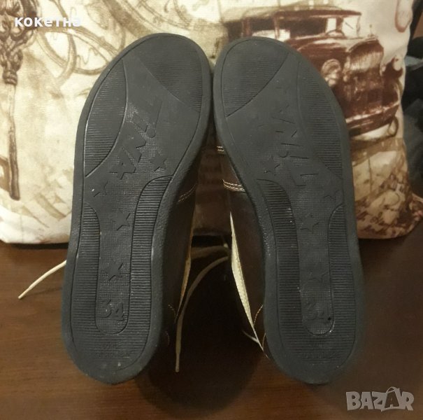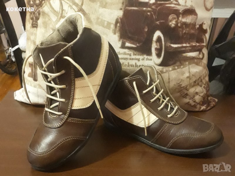 Обувчиците са изработени от висококачествена естествена кожа, отвътре подметката е изцяло от естествена кожа, дължина на стелката измерена от мен 21.5см. Модерен дизайн. Носени са един сезон.