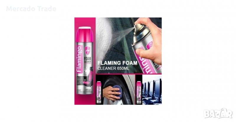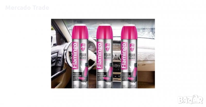 Универсалната пяна за почистване на Flamingo е особено ефективна за почистване на тапицерия от винил и плат, постелки, килими и кожа.
